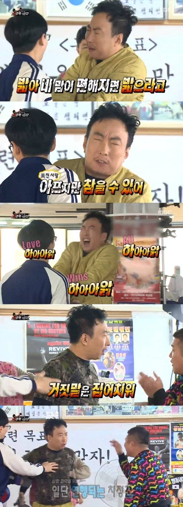이날 일일코치 유병재의 복싱 교육 과정에서 박명수는 조세호에게 텃세를 부렸다. 유재석에 대한 과한 애정을 드러내며 그가 조세호에게 잘해주는 것에 대해 못마땅해 했다. 그러면서 자신만 바라볼 것을 갈구했다. 자막에는 ‘美친 사랑’, ‘10년의 사랑’ 등의 직접적인 표현으로 1인자 유재석을 향한 박명수의 애착이 웃음을 자아냈다.