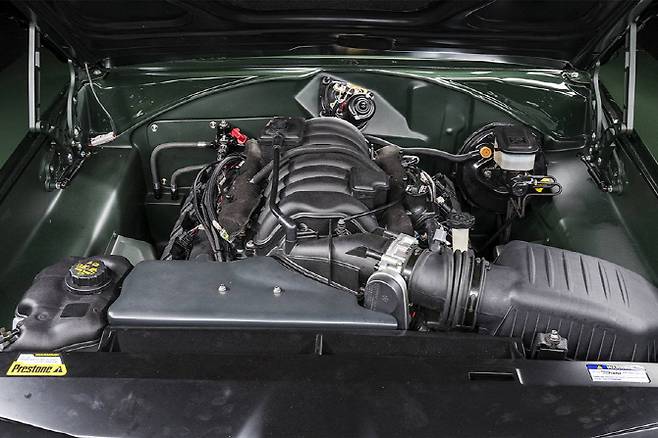 특히 더욱 인상적인 점이라면 차량의 전장은 기존 1969 닷지 차저 대비 2인치가 짧아졌으나 휠베이스는 3인치가 늘어났다. 여기에 HRE의 19인치의 알로이 휠과 고성능 타이어를 탑재했다.