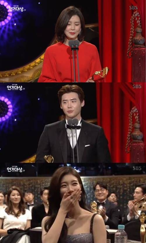 '언니는 살아있다' 손창민, 장서희가 일일 주말드라마 부문에서 수상한 가운데 '당신이 잠든 사이에' 이종석, 수지 또한 올해의 베스트 커플상에 이어 2관왕을 차지했다.