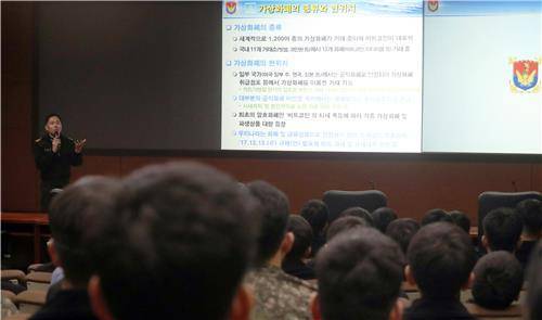 이날 강의에는 병사와 초급간부 등 100여명이 참석해 가상화폐에 대해 집중적인 설명을 들었다.