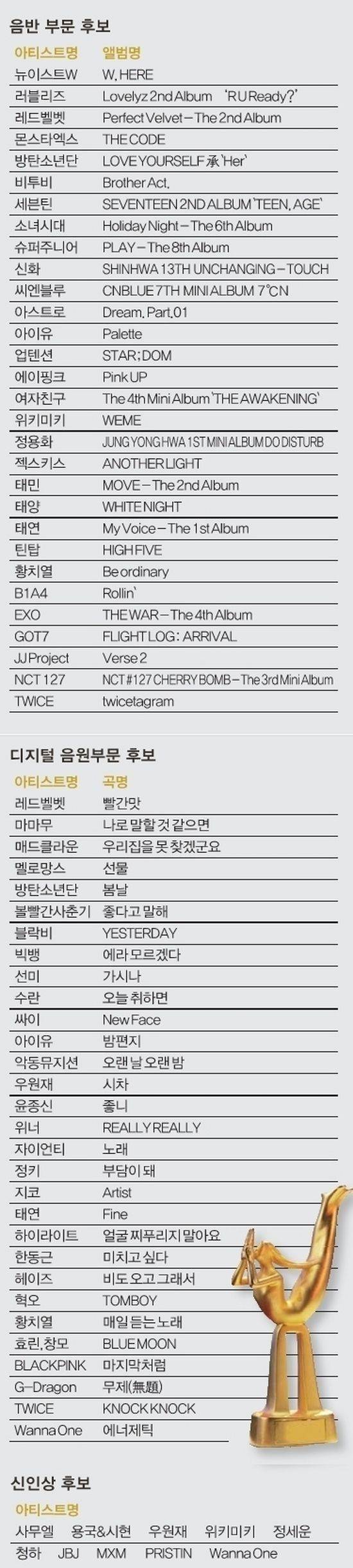 - [32회 골든] 음반·음원 후보 ⑩ 트와이스·지드래곤·워너원 등 누가 수상해도 인정