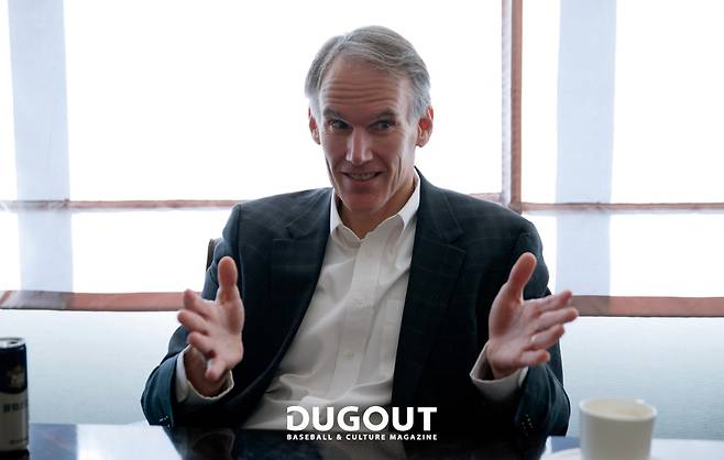 나 역시 만나서 반갑다. 한국의 MLB 팬들에게 나를 ‘베이스볼 라이퍼(Baseball Lifer : 평생을 야구 분야에 종사한 ‘야구쟁이’를 뜻한다)’라는 단어로 소개하고 싶다. 캔자스시티 로열스의 인턴을 시작으로 몇 개의 구단을 거쳐 MLB 사무국에 근무하게 됐다. 그 사이에 잠깐 다른 분야에서 일을 했지만, 곧 야구로 넘어와 1998년도부터 지금까지 MLB 사무국 산하에서 30개 구단의 대외 업무를 총괄하는 MLB 인터내셔널(이하 MLBI) 부서에서 근무하고 있다.