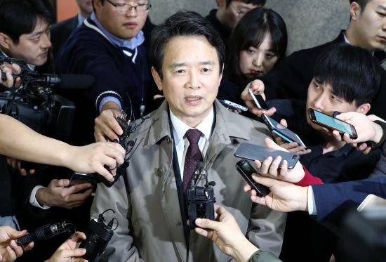 남경필 경기도지사가 9일 오후 서울 여의도 국회 바른정당 회의실 앞에서 취재진의 질문에 답하고 있다.