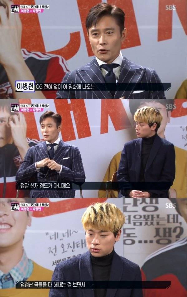9일 오후 방송된 SBS '본격 연예 한밤' (이하 '한밤')에서는 영화 '그것만이 내 세상'의 주연 배우인 이병헌, 박정민의 인터뷰가 공개됐다.
