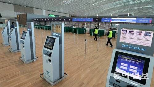 | 개장을 열흘 앞둔 8일 인천국제공항 2터미널 3층 탑승동. 공항 측은 2터미널의 출국 수속 시간을 줄이기 위해 승객이 스스로 짐을 부칠 수 있는 무인 화물탁송기(Self Bag Drop) 40대, 무인 탑승수속기(Self Check-in) 62대 등을 설치했다. 인천=박영대 기자 sannae@donga.com |