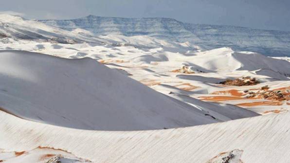 사하라 사막 강설이 그렇게 드문 일은 아니지만 그 빈도가 높아지고 있어 기후변화 재앙을 우려하는 학자들에게 흉조로 인식되고 있다.