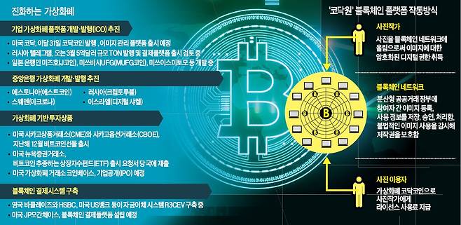 가상화폐의 화폐 인정 여부 논란도 스웨덴 러시아 에스토니아 등의 중앙은행이 가상화폐 개발에 나서면서 수그러들었다. 일반 기업마저 가세하면서 탈중앙·분권형 가상화폐의 발행은 더욱 가속화할 수 있다는 전망이 나오는 이유다.