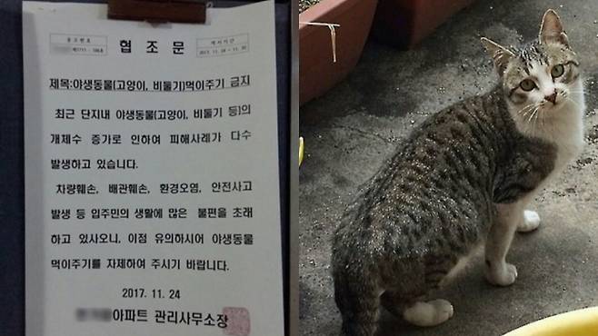 [뉴스pick] "길고양이 먹이 주지 마세요" 안내문 붙인 아파트 관리사무소에 '갑론을박'