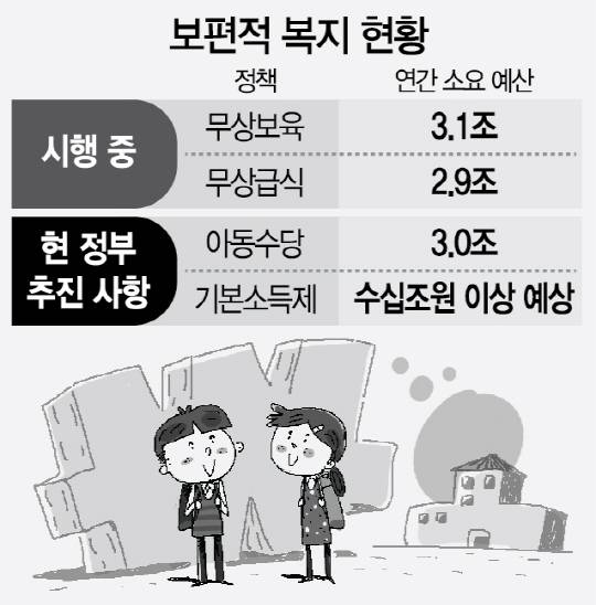 더구나 연간 3조1,000억원이 들어가는 무상복지, 2조9,000억원을 투입하는 무상급식 등 기존 보편적 복지 제도도 효과는 낮은데 나랏돈만 많이 들어간다는 비판이 줄곧 제기되고 있다. 김광림 자유한국당 의원은 “아동수당의 선별적 지원은 여야 3당이 여러 쟁점과 가능성을 고려해 결정한 사안인데 이제 와서 이를 흔드는 것은 적절치 않다”고 꼬집었다.