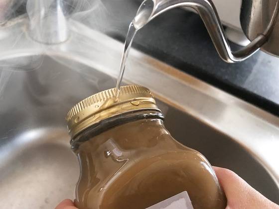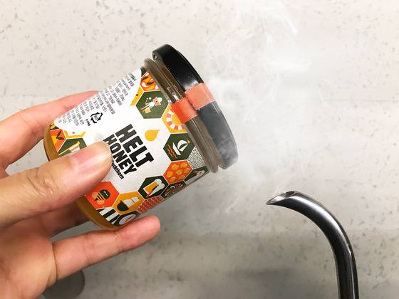 물을 끓일 상황이 안 된다면 정수기 온수 또는 뜨거운 수돗물을 그대로 사용해도 같은 효과를 낼 수 있다. 단 이때는 뚜껑 안쪽으로 물이 들어가지 않도록 신경 써야 한다. 잼이나 꿀 등 병 안의 내용물이 변질될 위험이 있다.