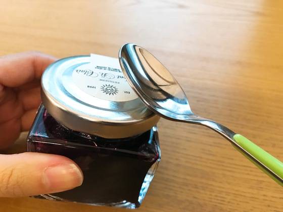 뚜껑 아래쪽 홈에 티스푼 끝을 넣고 지렛대처럼 들어 올린다.