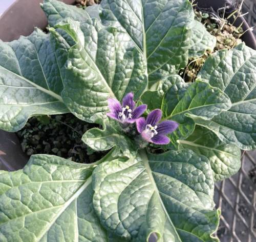 | 지름 약 3㎝ 크기의 보라색 꽃을 피운 만드라고라. |