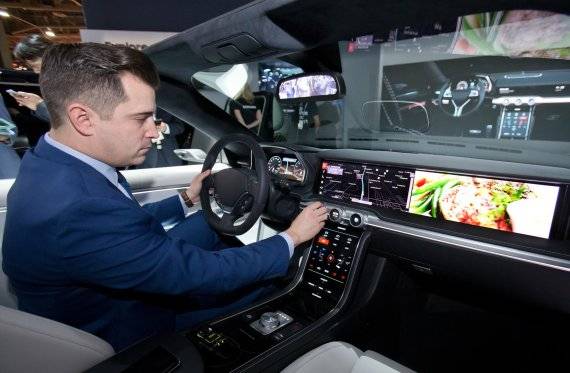 | 삼성전자는 자동차 안에서 음성만으로 음악을 켜고 에어컨 풍량을 조절하고, 운전 중에도 집 안에 있는 가전제품을 제어할 수 있는 자동차용 플랫폼 '디지털 콕핏'을 세계 최대 정보기술(IT) 전시회 'CES 2018'에서 공개했다. 디지털 콕핏에는 안드로이드 응용 기술과 삼성의 사물인터넷(IoT) 플랫폼인 '스마트싱스', AI 서비스인 '빅스비'를 적용했다. 삼성전자 모델이 편리한 운전환경과 인포테인먼트 시스템 제공하는 차량용 디지털 콕핏을 시연하고 있다. |