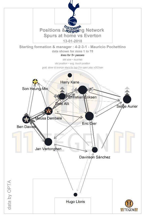 보통 상황 인식이 잘 되면 상대와 접촉할 일이 적어진다. 상대 수비의 범위에 들어가기 전에 미리 공을 간결하게 처리하여 벗어나기 때문이다. 상대와 경합이 적어지기에 체력이 비축되고 심리적인 여유도 생긴다. 이렇게되면 경기 중 상대 수비를 데리고 노는(?) 기분도 느낄수 있다. 주로 왼쪽 측면에 위치하는 손흥민이 공격적으로 공을 받으려면 첫 터치를 공격 방향으로 해야 한다. 그렇게 하려면 공을 받기 직전 상대 수비의 범위에서 벗어나야 한다. 오늘 에버턴 전에서 그 방법을 손흥민이 몇 차례 보여줬다. 풀백 벤 데이비스나 3선 미드필더 다이어, 뎀벨레에게 공을 받기 직전 상대 수비를 현혹시키는 좋은 사전 동작이 있었다. 앞으로 출발하는 척 하다가 내려와서 공을 받고, 반대로 내려오는 척 하다가 갑자기 스피드 변화를 주어 전방 침투하는 동작으로 에버턴 수비를 흔들었다.