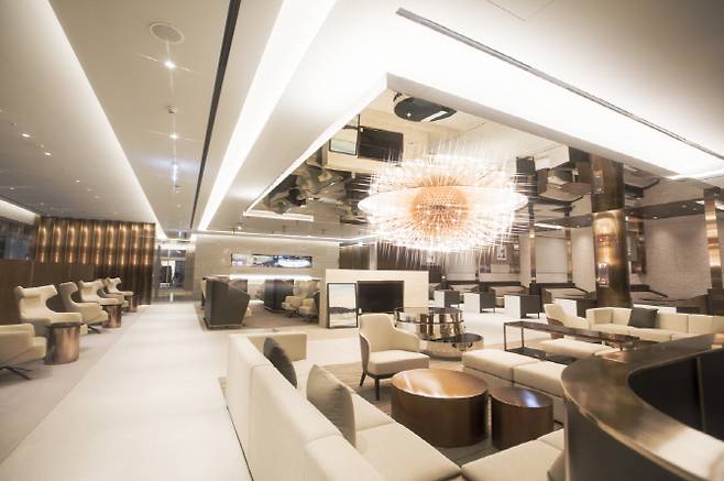 ‘마티나 골드 라운지’는 고급스러운 분위기로 독립적인 공간에서 편안함을 느낄 수 있도록 설계됐다. 라운지 입구에 여권과 제휴 카드로 비행기 티켓을 자동 발권할 수 있는 무인 키오스크를 설치했다. 일부 좌석은 무선 스마트폰 충전기도 준비돼 있다.