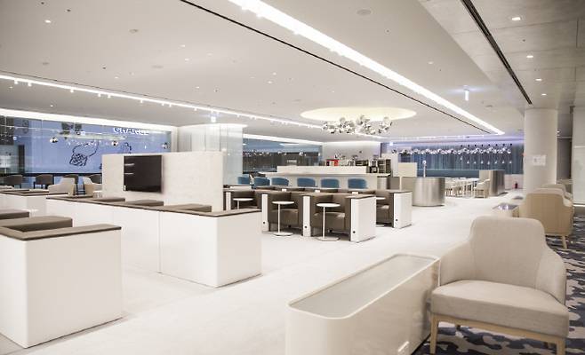 프라이빗존은 분리된 좌석 안에서 타인의 방해 없이 온전히 휴식을 취하고 싶은 고객에게 적합하다. 또 급증하는 1인 여행객을 위해 혼자서 식사를 즐기기 좋은 바 공간도 별도로 마련했다. 이곳 라운지에도 ‘마티니 골드’처럼 무인 키오스크와 스마트폰 무선 충전기가 있다.