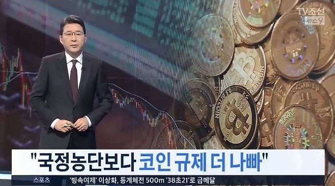 | ▲ △ 문재인 정부의 코인 규제가 박근혜 국정농단보다 나쁘다는 정체불명 주장을 소개한 Tv조선(1/12) |