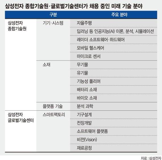 이밖에 삼성전자 종합기술원은 분석과학기술을 포함한 플랫폼 기술 분야 인재도 채용 대상에 포함했다.