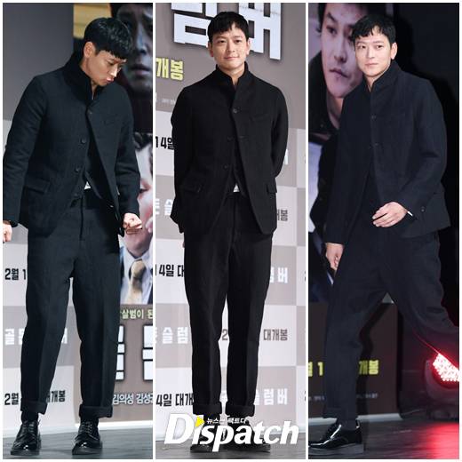강동원은 올블랙 패션으로 시선을 끌었다. 다리가 짧아 보일 수 있는 배기팬츠도 멋스럽게 소화했다.