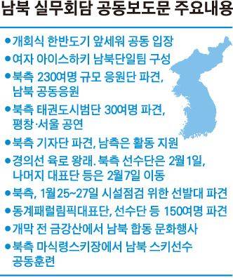 남북이 올림픽 개막 전 금강산 합동문화행사와 마식령 스키장 공동 훈련 등을 갖기로 합의한 것도 같은 맥락으로 해석 가능하다. 남측에서 북한 금강산ㆍ원산 지역으로 가려면 동해선 육로를 이용해야 이동이 손쉽다. 이번 실무회담 수석대표인 천해성 통일부 차관은 회담 관련 브리핑에서 “금강산 육로로 올라갈 수밖에 없다”고 했다. 한때 활발히 진행되던 금강산 관광은 2008년 고 박왕자씨 피격 사망 사건 이후 중단된 상태다. 이후 사실상 끊겼던 동해선 육로도 일단 평창 올림픽을 계기로 일시적으로나 다시 이어지는 셈이다. 고유환 동국대 북한학연구소장은 “경의선과 동해선 육로 재개통은 오래 닫혔던 통로를 연다는 의미”며 “개성공단, 금강산 관광 등 전면적 교류ㆍ협력을 재개하고 싶다는 북한의 의사가 협의 과정에서 어느 정도 관철된 것으로 볼 수 있다”고 했다.
