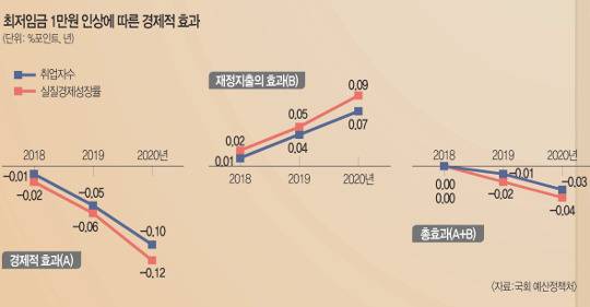 국회 예산정책처는 지난해 심재철 국회부의장에게 제출한 자료에서 최저임금 인상으로 2018년 고용이 0.01% 포인트 감소할 것으로 예상했다. 동시에 최저임금 증가에 따른 재정지출 증가로 올해 취업자 수가 0.01% 포인트 늘어날 것으로 내다봤다. 궁극적으론 최저임금 인상이 고용에 별 영향을 미치지 않을 것이라는 얘기다. 박능후 보건복지부 장관은 지난 15일 “최저임금 충격이 5∼6개월 후 완화될 것”이라고 말했다.