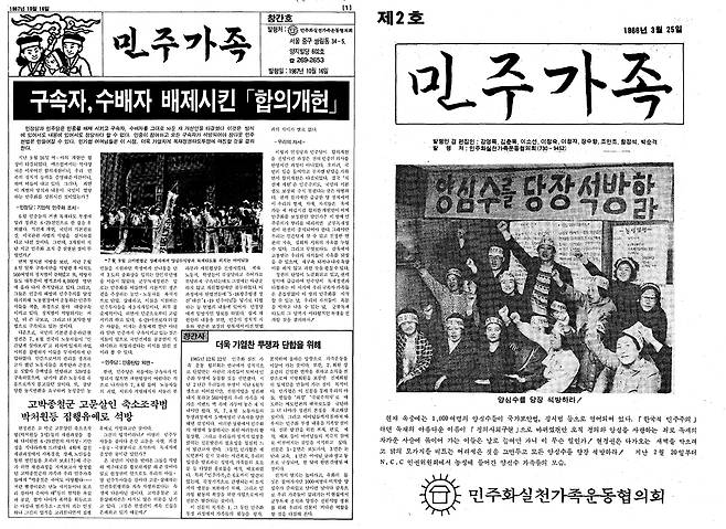 | ▲ 민가협 기관지 [민주가족] 창간호와 2호 표지 |