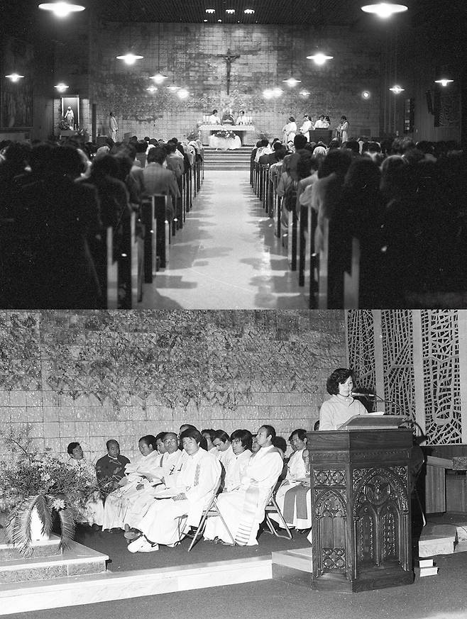 | ▲ 1985년 11월 8일 고문공대위 보고대회가 열린 혜화동 성당에서 열린 미사와 보고대회 전경 |