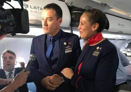라탐 칠레 항공은 18일(현지시간) 공식 트위터에 "역사상 처음으로 기내에서 결혼식을 치러준 프란치스코 교황에게 감사드린다"면서 결혼식 사진을 공개했다.