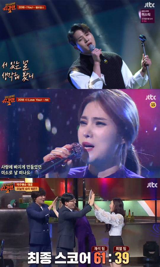 유희열팀의 멜로망스는 듣는 이의 가슴을 저릿하게 하는 '2018 You'를, 유재석팀의 거미는 이별노래 전문가수라던 호언장담대로 애절한 감성이 가득한 '2018 I Love You'를 선보였다. 김상민은 "들으면서 눈물이 났다", 임재욱은 "여운이 대단했다"며 감탄했다.