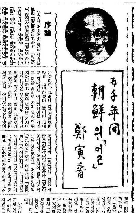 동아일보는 위당이 직접 쓴 '5천년간 조선의 얼'을 1935∼1936년 무려 440회에 걸쳐 연재했다.