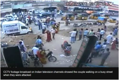 | 카우살야와 그의 남편 샨카르는 2016년 3월의 어느날, 타밀나두 주(州)에 있는 옷가게를 다녀오다 오토바이를 타고 달려든 갱단이 휘두른 칼에 몸 수십곳을 찔렸다. 카우살야에게 칼을 휘두른 남성은 “왜 그를 사랑했어! 왜!”라고 외친 것으로 알려졌다. 경찰 조사 결과 카우살야의 아버지는 전과가 있는 남성 5명을 끌어들여 5만루피(약 84만원)를 주고 두 사람을 죽이라고 요청했다. 영국 BBC 홈페이지 캡처. |