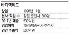 창업 10년 만에 첫 매출이 났다. 2007년 전립선 비대증 치료제를 개발한 대형 제약 회사가 고객 선물용으로 바디텍메드의 전립선암 진단 키트 100만달러(약 10억7000만원)어치를 사겠다고 한 것이다. 최 대표는 밀렸던 직원 월급을 두 배로 갚았다. 이후 바디텍메드는 연평균 38%의 매출 성장률을 보이면서 미국·중국 등 전 세계 95국에 질병 진단 키트를 수출하고 있다. 작년 매출 530억원(추정치) 중 95%가 수출이다. 영업이익은 70억원 정도다.