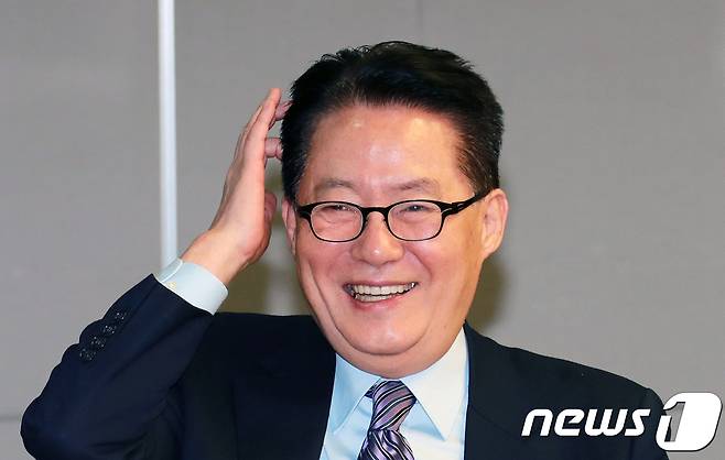 (서울=뉴스1) 이동원 기자 = 박지원 국민의당 전 대표가 24일 오전 국회 의원회관에서 열린 국민의당 통합반대파인 개혁신당 창당추진위원회의 정례회의에서 의원들과 대화를 나누고 있다. 2018.1.24/뉴스1