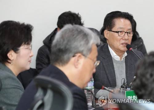 (서울=연합뉴스) 임형섭 기자 = 국민의당 박지원 전 대표는 25일 안철수 대표를 겨냥해 "합당 후 대표직을 사퇴하겠다는 것은 눈 가리고 아웅 하는 것"이라며 "결국 바른정당 유승민 대표와 통합신당에서 공동대표를 할 것"이라고 비판했다.