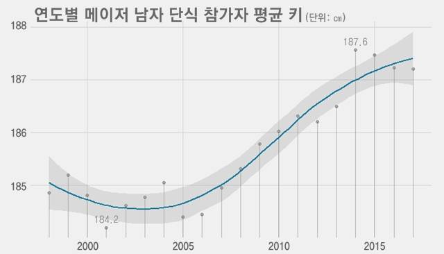 테니스 선수들 키도 갈수록 커지는 추세입니다. 1998년 4대 메이저 대회에 참가한 남자 선수의 키는 평균 184.9㎝였습니다. 지난해에는 187.2㎝로 2.3㎝ 늘었습니다.