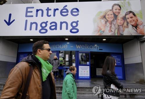 epa06473598 Belgian unionists walk in front of the Carrefour Supermarket company's Belgian headquarters, in the Evere district of Brussels, Belgium, 25 January 2018. Belgian trade unions are meeting with the management to discuss restructuring plans of the supermarket chain in Belgium. Ealier this week Carrefour had presented a restructuring plan for its markets in France that reportedly will see a cut of 2,400 jobs. EPA/OLIVIER HOSLET
