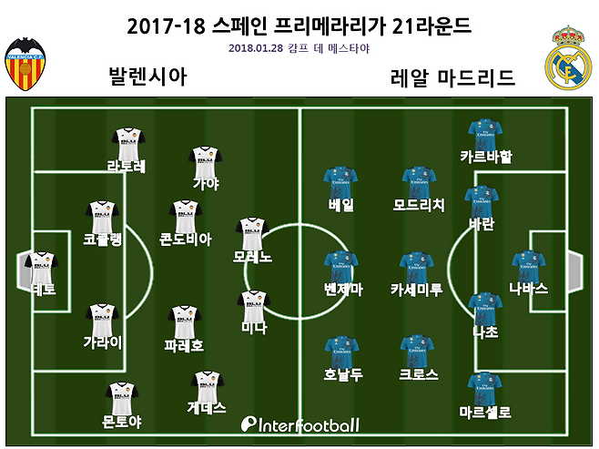 [선발 라인업] 레알, BBC 선발 출격...발렌시아, 모레노-미나 투톱