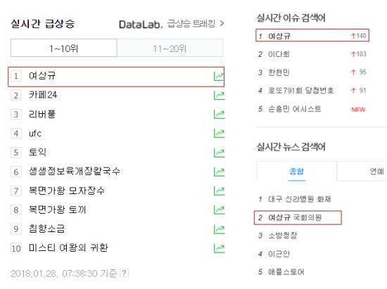방송 직후 여 의원은 인터넷 포털 사이트 실시간 검색어 1위를 차지했다.