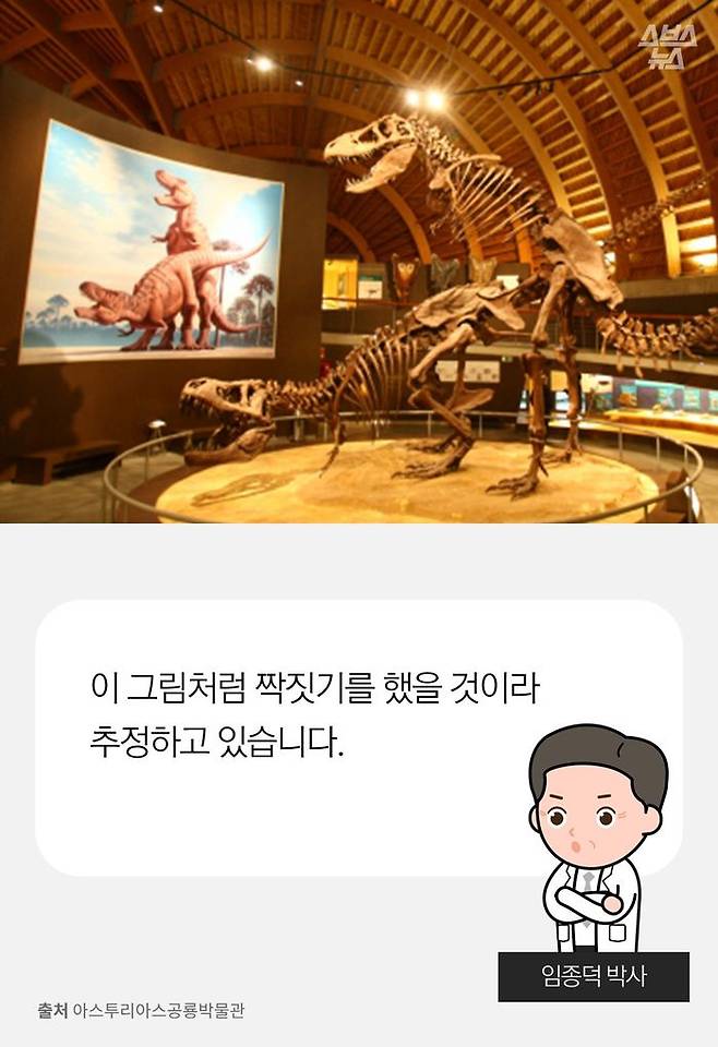 대형 육식 공룡의 경우 두발로 일어나 짝짓기를 하고, 그 외엔 대형 포유류와 비슷하게 올라탔을 것이라 추정하고 있습니다.