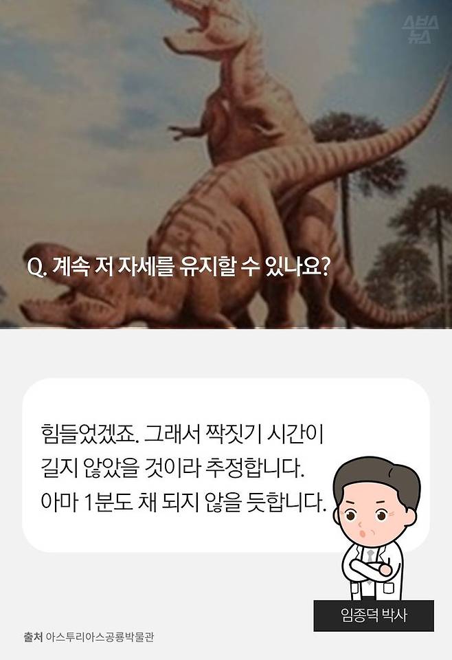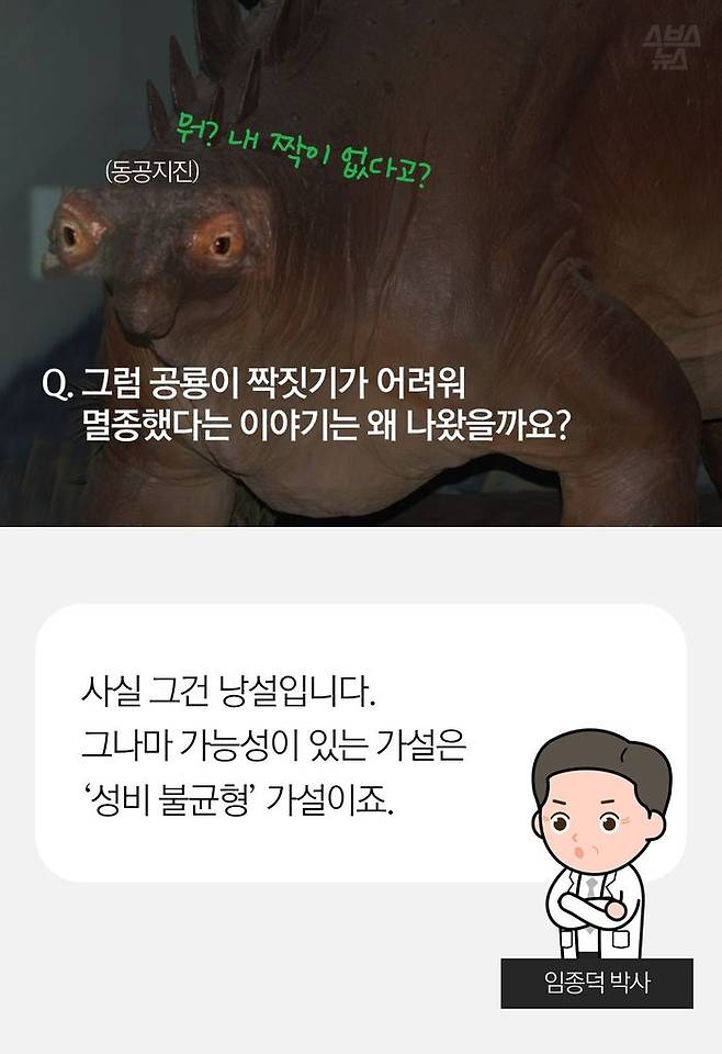 공룡 전문가 임종덕 박사에 따르면, 대형 공룡도 짝짓기에 큰 무리가 없기 때문에 '공룡 짝짓기 멸종설'은 낭설이라고 합니다.