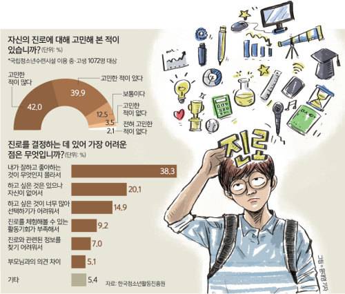 이 같은 상황에서 청소년들에게 미래를 꿈꾸라는 어른들의 주문은 사치에 가깝다. 한국고용정보원의 2012년 진로교육실태조사(중고생 1072명 대상)에 따르면 장래희망이 ‘없다’고 답한 학생은 중학생 34.4%, 고등학생 32.3%로 집계됐다.