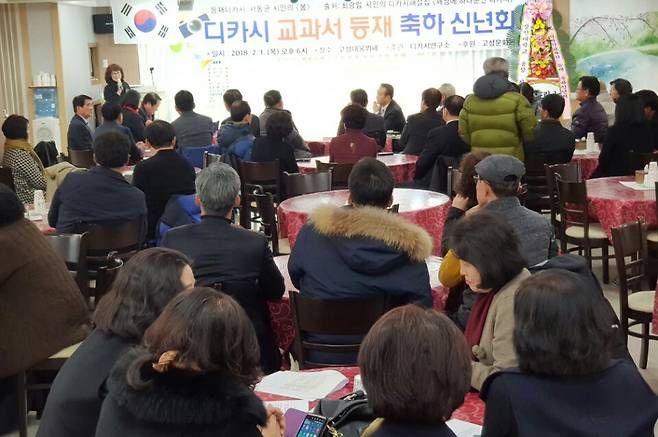 디카시연구소는 2월 1일 저녁, 고성 대웅예식장뷔페에서 서동균 시인의 '검정 중고등학교 국어교과서 디카시 수록'을 축하하는 신년인사회를 열었다.
