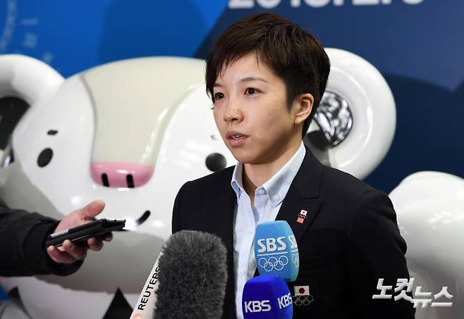 ‘2018 평창 동계올림에’ 출전하는 일본 스피드스케이팅 선수 고다이라 나오가 4일 오후 강원도 양양공항을 통해 입국해 취재진의 질문에 답하고 있다.