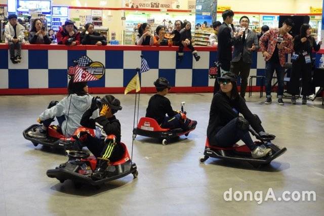 | 서울 은평구 롯데몰 은평점에서 열린 ‘AR 하도카트’ 챔피언십 참가자들이 예선전을 치르고 있다. |