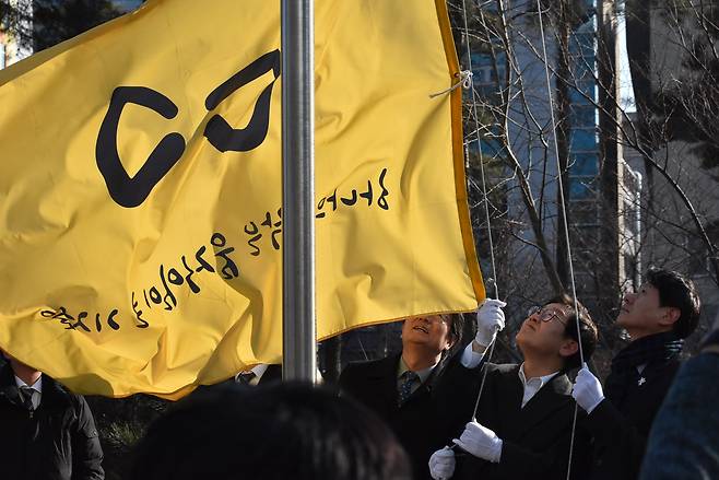 세월호기 내리고 한반도기 올리며 이재명 시장이 한 말