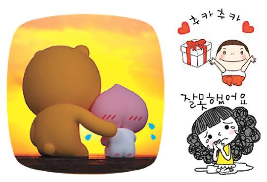 ‘잘 고른 이모티콘 하나, 백 마디 말보다 낫다.’ 조만간 우리 속담사전엔 이런 말이 등재될지도 모르겠다. 그만큼 모바일 채팅 메신저에서 쓰는 이모티콘은 이젠 없어서는 안 될 필수요소가 됐다. 글로 전할 수 없는 분위기와 감정을 전달하는 데 그만한 게 없다. 그렇다면 한국사회 메신저 이용자들은 어떤 이모티콘을 즐겨 쓸까. 특히 30대 이하 청년들과 40대 이상 장년들의 이모티콘 취향은 어떤 특징을 가지고 있을까. 채팅 메신저인 ‘카카오톡’의 인기 이모티콘 24종과 ‘라인’의 스티커(이모티콘) 국내 판매 현황을 분석해 세대별 유행을 짚어봤다.
