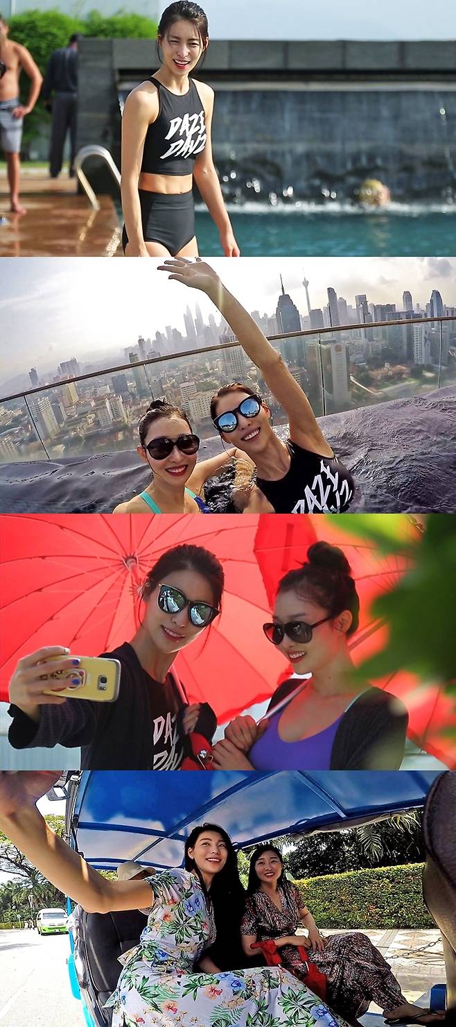유명 수영장에 버금가는 쿠알라룸푸르 뷰를 자랑하는 루프탑 수영장을 공짜로 이용할 수 있다는 사실에 김정화와 김효정은 망설임 없이 수영복으로 갈아입었다.