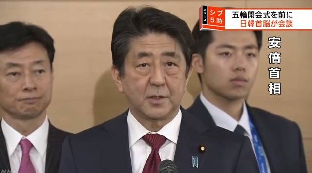 일본 NHK에 따르면, 9일 문 대통령과 아베 총리는 평창 동계올림픽의 개막 장소 인근의 호텔에서 오후 3시부터 정상회담을 시작해 약 1시간 넘게 양국 관계의 현안에 관해 대화를 나눴다.