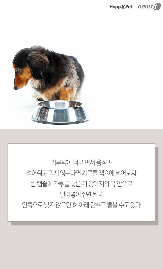 (서울=뉴스1) 최서윤 기자,최진모 디자이너 = 강아지도 병을 치료하려면 약을 먹어야 한다. 하지만 강아지에게 약을 먹이는 것은 아기들에게 먹이는 것만큼 쉽지 않다. 가루약 먹이기는 더욱 어렵다. 많은 보호자들의 고민을 덜어줄 가루약 먹이기 방법을 소개한다.