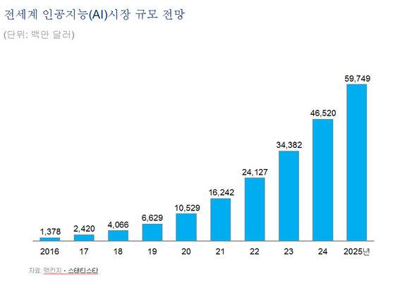 ◆전 세계 모든 산업 뒤흔드는 AI=맥킨지 글로벌연구소(MGI)에 따르면, 구글과 바이두 등 디지털 선두주자들이 인공지능 관련 연구개발(R&D)과 기업 인수합병(M&A) 등에 쏟아부은 돈은 이미 2016년에 최대 300억 달러에 달한 것으로 추정된다. 벤처캐피털ㆍ사모펀드와 같은 투자회사들의 인공지능 관련 투자액도 2016년 한해 60억~90억 달러에 달했다. 이는 2013년 투자 금액의 3배가 넘는 규모이며, 지난해 1분기에만 37건의 대규모 인공지능 관련 M&A가 이뤄졌다.